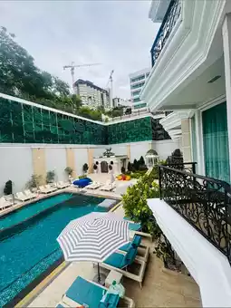 This hotel is right on the beach, but you can't swim. The staff provided excellent service and a varied breakfast. We arrived after 10:00 AM and the food was still full. The pool is beautiful. The evening atmosphere is great. The room is nice, clean, and spacious. The housekeeper is lovely.