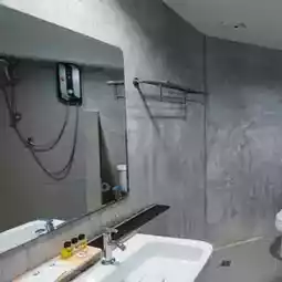 ✨ The modern interior – concrete walls and wood accents create a simple yet luxurious feel, creating a unique budget-friendly boutique hotel.