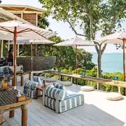 Romantic beachfront setting under fairy lights. Known for Thai seafood and cocktails. Open 11 AM–11 PM. Best for dinner by the water.