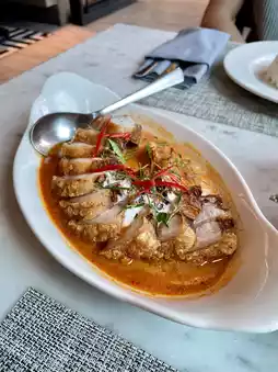 Another must-try is the Thai cuisine at the hotel, which is equally impressive. A highly recommended dish is the crispy pork Panang curry, which is absolutely delicious.