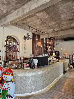 A recommended cafe in Pattaya. Decorated in a French style, the shop is cute, the bread is not expensive, and the cakes, food, and drinks are very cheap. The atmosphere is beautiful, the staff is friendly, and there's parking available. I went on a weekday, so it wasn't crowded, so I could chill out and relax. It's a small shop, but beautifully decorated. Girls should be able to take photos from many angles (if there aren't many people). The shop is decorated in a vintage style. The service is good and the food is recommended. The food is delicious, the croissants are good, and the pizza and spaghetti might not be amazing, but they're good and not bad.