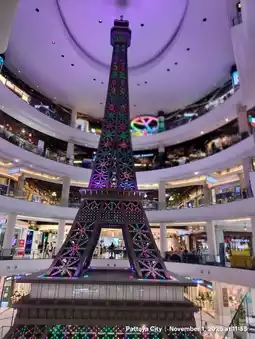 📍 Terminal 21 Pattaya, restaurants, shops, City Sightseeing bus stop, and famous check-in points in many countries. 🗼 Eiffel Tower, France 💂 London bus, Hogwarts Gate 🛶 Venice cruise, Leaning Tower of Pisa, Rome 🌉 San Francisco Suspension Bridge ⛩️ Sumo, Ginza, Japan The 4-story escalator is a fun place to take photos.