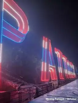 📍 Bali Hai Cape, night viewpoint, take photos of the Pattaya City sign and the night lights of Pattaya Walking Street.