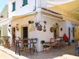 As the main hub of the island, Gaios is where most of the shops, cafes, and tavernas are located. The small islands that guard the harbor are historical sites themselves. On Agios Nikolaos, there are the ruins of a Venetian fortress built in the 15th century. On Panagia island, there is a church and a monastery. Gaios serves as the main point for boat trips to other parts of Paxos and to the nearby island of Antipaxos.