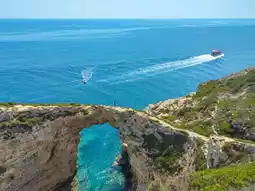 Tripitos Arch is a good example of the powerful way nature shapes the land. Its rugged stone contrasts nicely with the bright turquoise of the sea below.