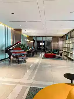The lobby of The George Penang by The Crest Collection in George Town offers a harmonious blend of colonial elegance and contemporary design. Upon entering, guests are greeted by a Penang historical heritage wall, showcasing the city’s rich development history, which adds a cultural depth to the ambiance . The space is further enhanced by a unique signature fragrance, leaving a lasting impression on visitors.
