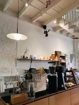 📝: A small coffee shop in a white building, nestled in an old shophouse, with a warm atmosphere. They serve high-quality specialty coffee beans, some imported, and the taste is incredibly delicious. The shop is beautiful, with a relaxing, comfortable atmosphere inside. Stop by for a drink and a break from your travels.