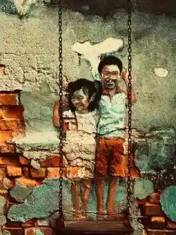 Stroll along the creative street art and take a photo with the famous "Child on a Bicycle" painting.