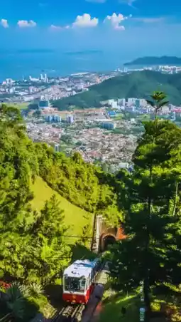 🏞️ Continue to Penang Hill — the highest viewpoint on Penang Island. Riding the electric tram through lush forests to the summit is both romantic and relaxing. At the top, you'll be greeted by cool air and sweeping views of the sea and city.