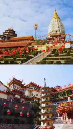 🛕 Kek Lok Si Temple — Malaysia's largest Buddhist temple, featuring a towering pagoda and a large Guan Yin statue visible from afar. The temple's interior features a beautiful blend of Chinese, Thai, and Burmese art.