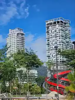 This morning, we went to Tai Tong for dim sum. There was one thing I couldn't quite get enough of: the congee. But everything else was delicious. After eating at this place, we walked to the cafe I'd been eyeing since the night before, OFFFFive COFFEE. We called a Grab to Gurney Bay. When we arrived, there was no one there. Because it was early in the morning and the sun was very hot, this place was beautiful and peaceful. We stayed here for a long time, despite the hot sun. We walked around and found Gurney Plaza.