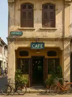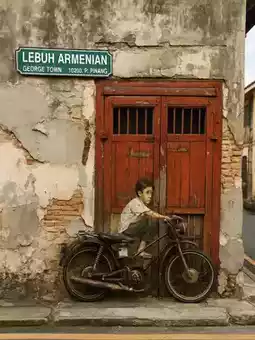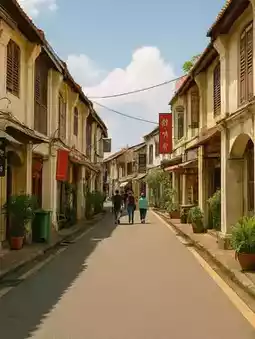 The streetscape, a vibrant mix of cultures, Chinese-style shops, traditional Malay houses, and colonial architecture, are easily visible even on foot.
