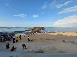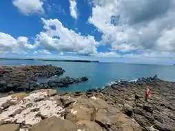 Penghu's famous Moshi Fenhai is a natural wonder created by the changing tides. At low tide, the water recedes, revealing a gravel path that seems to lead directly into the sea, connecting to Chiyu Island on the opposite side. This unique sight is truly remarkable, and walking in the middle of the sea feels like entering a secret paradise. Tide times are clearly indicated on site, so it's recommended to check them in advance for safety. After your walk, you can stop by the adjacent "Moshi Moshi Gift Shop," which sells a variety of Penghu specialties and offers air conditioning for a quick break—a thoughtful touch. Whether you're a nature enthusiast, a photographer, or simply looking to experience a unique landscape, this is a worthwhile visit.