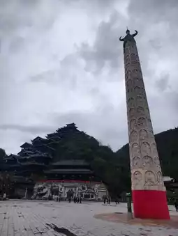 Chiyou Jiuli City is a 4A-level scenic area that combines Miao history and culture with natural scenery. The park covers a vast area, with Miao-style buildings built against the mountainside, including stilted buildings, the Jiuli Divine Palace, the Jiuli Divine Pillar, and the Chiyou Grand Hall, showcasing a history and culture different from that of the Han Chinese.