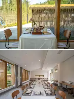 The homestay is nestled in the mountains, surrounded by breathtaking scenery. Opening the window in the morning, the fresh air mixed with cool mist and the fragrance of trees greets you, making you can't help but take a few deep breaths. Children chase and play in the yard, enjoying the fun of nature.