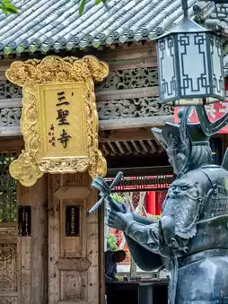 2. Sansheng Temple: Originally the mansion of Zhang Song, a "genius" from the Three Kingdoms period, hidden behind nanmu trees, it's full of ancient charm. The temple layout is exquisite, with the Puxian Hall featuring a unique domed design. The white marble pagoda along the central axis complements the pink and white magnolias beautifully, while sika deer add a touch of spirituality.