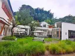 An autumn rain steals the cool breeze🍃. At Fangtang·Qingshan Terrace in Qicun, Pengzhou's Longmen Mountain, the unexpected autumn rain🌧️ pressed the mute button, bringing a refreshing coolness to the entire courtyard.