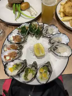 Perth’s Oyster Bar Elizabeth Quay offers a delightful waterfront dining experience overlooking the Swan River. It features two levels, including a rooftop bar with panoramic views. The menu boasts fresh South Australian Pacific oysters, both chilled and grilled, complemented by a selection of Australian wines and beers.