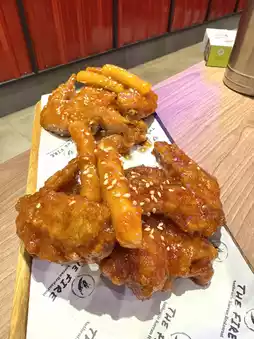 The highlight? Their spicy Korean fried chicken paired with chewy tteokbokki—an explosion of flavors that left us speechless. For something creamy and indulgent, don’t miss the Chi-Chee-Plop! The combination of mozzarella cheese and spicy chicken is pure comfort food. We also tried the Korean pancake (pajeon), crispy on the outside and soft inside, served with a tangy dipping sauce.