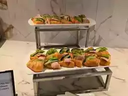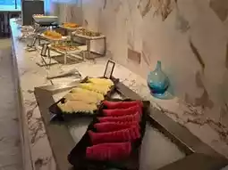 Enjoy delicious meals all day long from 6:30 AM until closing at 10:00 PM every day. This exclusive service is available for Hilton hotel chain customers, diamond members, and special guests who book rooms from Club Room, Deluxe Suite, and Premier Suite. The service starts with breakfast at 6:30 AM every day, offering a semi-buffet style with a la carte menu options, including American breakfast and continental breakfast with a choice of eggs. A wide selection of tea and coffee is available, with special hot and cold options. Sparkling mineral water is served throughout the day, along with fruits, Malaysian tea, crackers, and cookies. The special evening cocktail is served from 6:00 PM to 8:00 PM, but guests can stay until closing at 10:00 PM. The dinner includes a semi-buffet with alcoholic beverages, white and red wine, Western-style bakery cakes, Malaysian desserts, and fruits. All of these are available without any additional service charges. The taste and quality of the food are excellent, and the atmosphere is quiet and cozy.