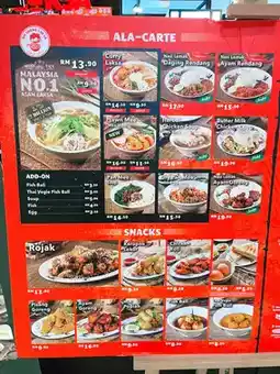 Ah Cheng Laksa also offers a selection of snacks and beverages, such as Rojak, Keropok Lekor, and Ais Kacang, providing a comprehensive Malaysian dining experience.