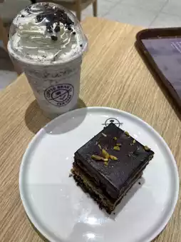 This was the real surprise. Imagine a traditional Middle Eastern kunafa — flaky and buttery — now fused with a soft pistachio sponge cake and a nutty cream layer. The top had that signature golden crisp, and the crushed pistachios gave it an earthy edge. It’s not your average café dessert — a little decadent, a little fancy, and a lot satisfying.