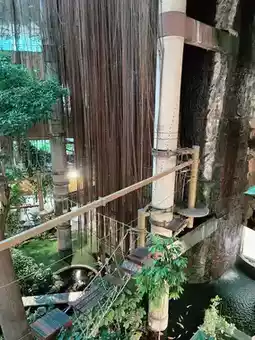 Suitable for both kids and adults, the adventure park blends physical activity with the beauty of a tropical setting. The vibrant atmosphere, complete with real trees and flowing water features, makes it feel like a true jungle escape. Whether you’re climbing, swinging, or just soaking in the views, it’s a fun and refreshing way to spend the day.