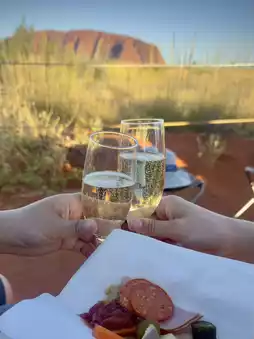 Drinking wine while looking at the picturesque Ayers Rock and having a barbecue dinner with the vast Milky Way as the ceiling made the red desert Uluru an unforgettable travel destination.