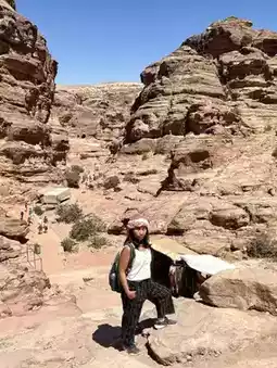 Petra is an ancient city in rocky mountains in Jordan. Experts indicate that an earthquake and volcanic activity occurred here, forming a big canyon with rocky ravines and steep cliffs.
