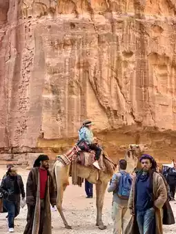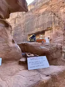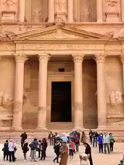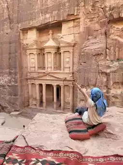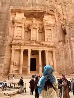 In order to take a picture of Al Khazneh while sitting on the cliff as in images 1 and 3, you have to climb the cliffs on the left and right of Al Khazneh.