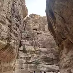 The entrance to the ruins is a gorge called 'Siq,' flanked by towering rock walls on both sides. After passing through the approximately 1.2 km path, the magnificent 'Al-Khazneh (The Treasury)' suddenly appears, offering a breathtaking sight.