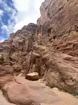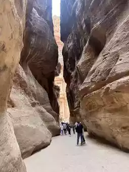 At the end of the Siq you will gain your first glimpse of the spectacular 40m high treasury that made this place so famous. #aprilblooms #petra #rocks