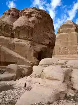 The moment I arrived in Petra, I was amazed by the fact that 'the entire city is made of rock.' Houses, temples, and even stairways and roads were carved out of the red sandstone cliffs. It's hard to believe that people accomplished this thousands of years ago. 😮