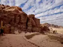 The weather was perfect, and the contrast between the red cliffs and the blue sky was breathtaking. The view from the lookout point was like a painting. As I walked along the winding cliffs, glimpses of Petra's architecture would appear, making me feel like I was exploring a world straight out of a video game. 🎮