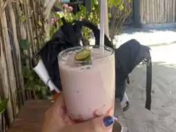 A cafe right next to the sea with a great view. There's a super stylish cafe at the end of a complicated residential area called ??? in a place like this. I thought to myself that this would never happen in Japan, but I enjoyed the stylish drinks, which were also surprisingly cheap. It was hot but comfortable at the cafe right next to the sea 😌