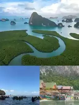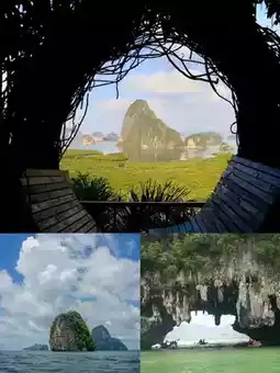 - Phang Nga Bay National Marine Park: Known as the "Little Guilin on the Sea," this park is dotted with strangely shaped limestone islands, stalactite caves, grotesque rocks, sea caves, and precious mangrove forests. You can take a boat tour to admire the towering peaks on the sea or kayak through narrow caves.