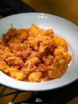 This time in Thai Mueang, we stopped by this charming restaurant, a great escape from the hustle and bustle of the city. #MeeSuk is located in the forest by a stream. The atmosphere is wonderful, with tables along the stream and in the stream. You can even dip your feet and eat in the water, or even play in the water. It's also great for taking the kids, as the water isn't too deep.