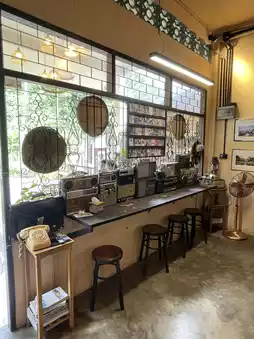 If you're visiting Phang Nga and looking for a small cafe with a great atmosphere, we recommend Ma Ka Long Café. Situated on a hillside, surrounded by mountain views, the cool breeze wafts through, creating a Mae Kampong-like atmosphere that makes you feel relaxed from the moment you arrive. The front of the cafe is open-air, perfect for chilling out, while the interior features a few tables. The cafe itself is not very large, and the interior is decorated with antiques, perfect for relaxing with friends, loved ones, or family.