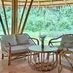 This place feels like escaping the chaos to hide in a lush green forest, embraced by majestic limestone mountains. The accommodation features stylish glamping tents. Despite being tents, they are fully equipped with modern amenities, including air conditioning, private bathrooms, and a private balcony with breathtaking mountain views!
