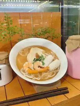 This dish is truly delicious, as its reputation suggests. The soup is fragrant and flavorful, and slurping it up hot is incredibly easy. The noodles are perfectly soft and packed with toppings like shrimp, minced pork, pork balls, and cartilage. The crunchy texture is incredibly satisfying. 🦐🥩