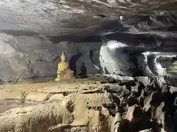 This time, we chose to go into Tham Nam Lod, which has beautiful natural stalactites and stalagmites inside. Each cave has a spacious hall with many forks leading to different caves. There are 18 caves, but the one I like the most is the cave leading to the reclining Buddha image. The view is the most beautiful.