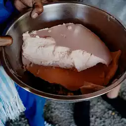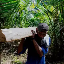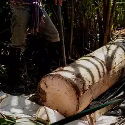 3. Scrape the sago palm to extract the inner flesh to squeeze out the flour powder.