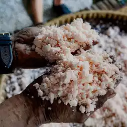 4. Squeeze the sago palm flesh (similar to squeezing coconut milk). After that, let it settle and we will get light pink flour.