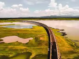 💙 Along the way, you will see a view of the vast dam as far as the eye can see. The cool wind blows all the way. At some points, the water floods the edges of the railway until you can barely see the tracks. It's a very unusual and romantic sight.