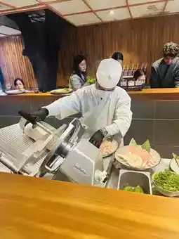 The appetizers and side dishes are also exceptional. Fresh vegetables and mushrooms are served generously, with unlimited refills. The staff are friendly, monitoring the heat level of the grill, and the grilling is done when the heat is low. It's a truly enjoyable and immersive meal. "Serious Sukiyaki"