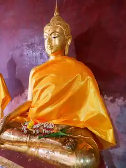 It is a Buddha statue in the Mara-Vijaya attitude. The outside is covered with plaster and then lacquered and gilded. It is believed that it came from the abandoned Huasanam Temple, which is located behind #Wat Yai Suwannaram 🌴