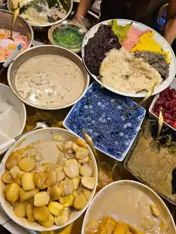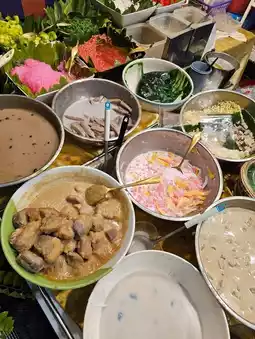 A famous dessert shop in Phetchaburi Province. The shop is located opposite Wat Mahathat. If you come to Phetchaburi and haven't eaten at this shop, it's considered that you haven't arrived yet. It's a big mistake. This shop has been open for more than 50 years and has a variety of traditional Thai desserts. If you stop by Phetchaburi, don't forget to try it.