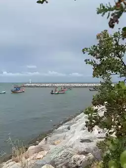 We woke up in the morning and ate a famous Ayutthaya dish, boat noodles, before continuing on to Phetchaburi, where we'd find delicious food at the morning market and visit the beach, watch the waves, and enjoy the cool breeze before heading back to our accommodation.