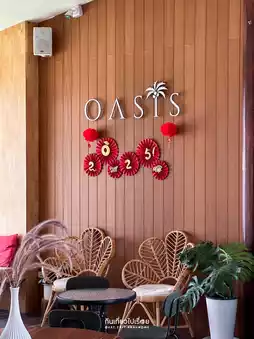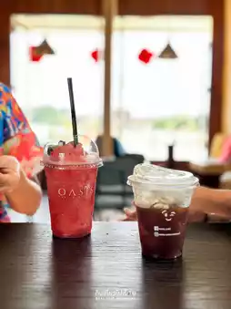 #NewYearNewTrip OASIS Cafe & Dessert is a cafe with a nice atmosphere located in Ban Laem District, Phetchaburi Province. It stands out with its two-story vintage wooden house located by the water, giving a natural feel that combines rice fields and salt fields, making every corner beautiful. It is suitable for those who like to take pictures or are looking for a place to relax.
