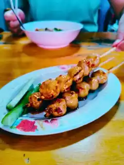 🥗In addition to the red pork noodles, the restaurant also offers other equally exciting dishes, such as the grilled meatballs, which are firm and bouncy, paired with a delicious dipping sauce, or the red pork rice, which offers a delicious and satisfying flavor. This makes Jay Nong a perfect choice for a quick lunch or dinner, perfect for those looking for a quick and satisfying meal. For those looking for a delicious noodle shop in the Phetchaburi area, Je Nong's Restaurant is a must-try.